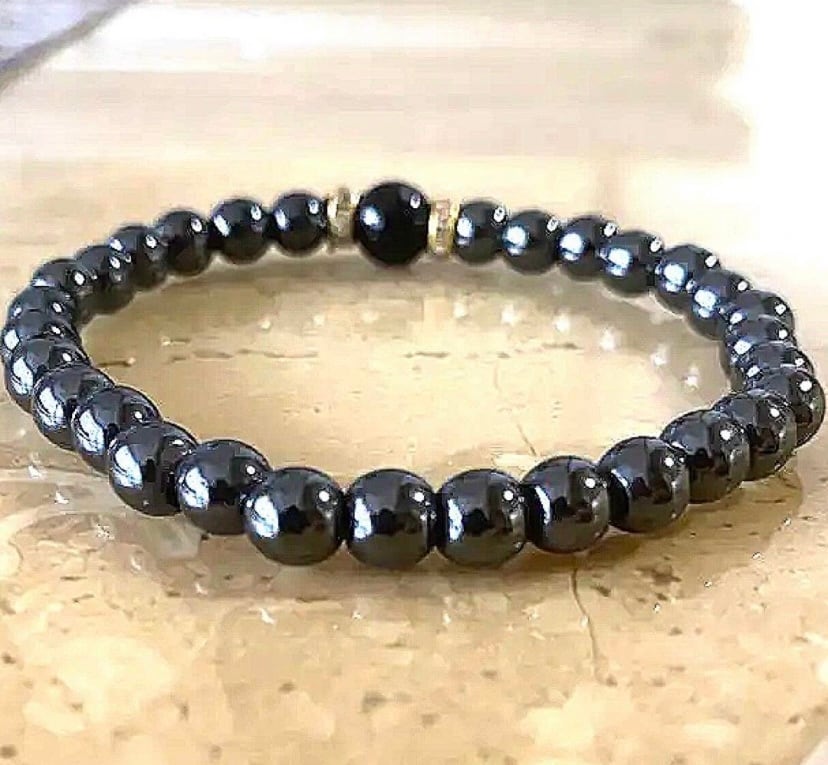 美しく光り輝くヘマタイト6mm玉と、パワフルなエネルギーを持つチベット産モリオン(黒水晶)8mm玉が贅沢に組み合わされた光沢ヘマタイトと磁気ブレスレット。地球からのエネルギーを受け取り、体の中に溜まったマイナスエネルギーを浄化してくれます。光沢ヘマタイトの魅力である美しい輝きは、おしゃれな普段使いにもぴったりです。