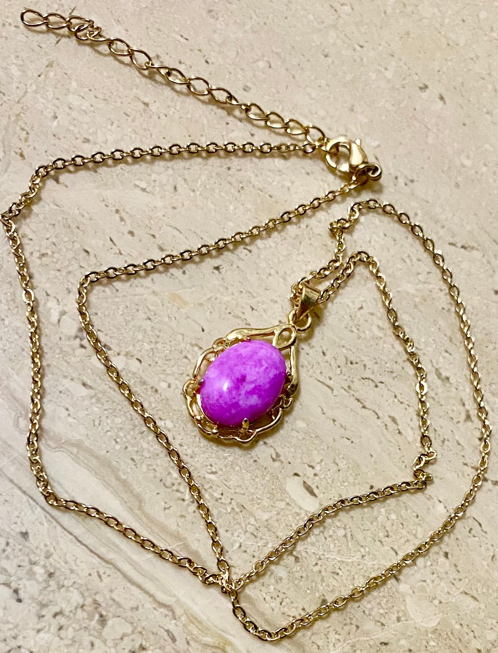 -||- 世界3大ヒーリングストーンとして知られる天然石スギライトを使用したネックレス。アレルギー対応のサージカルチェーンにゴールドカラーの仕上げで、繊細な装いにぴったりです。長さも調整可能なので、どんなスタイルにも合わせやすく、日常使いから特別な日まで幅広くお楽しみいただけます。
