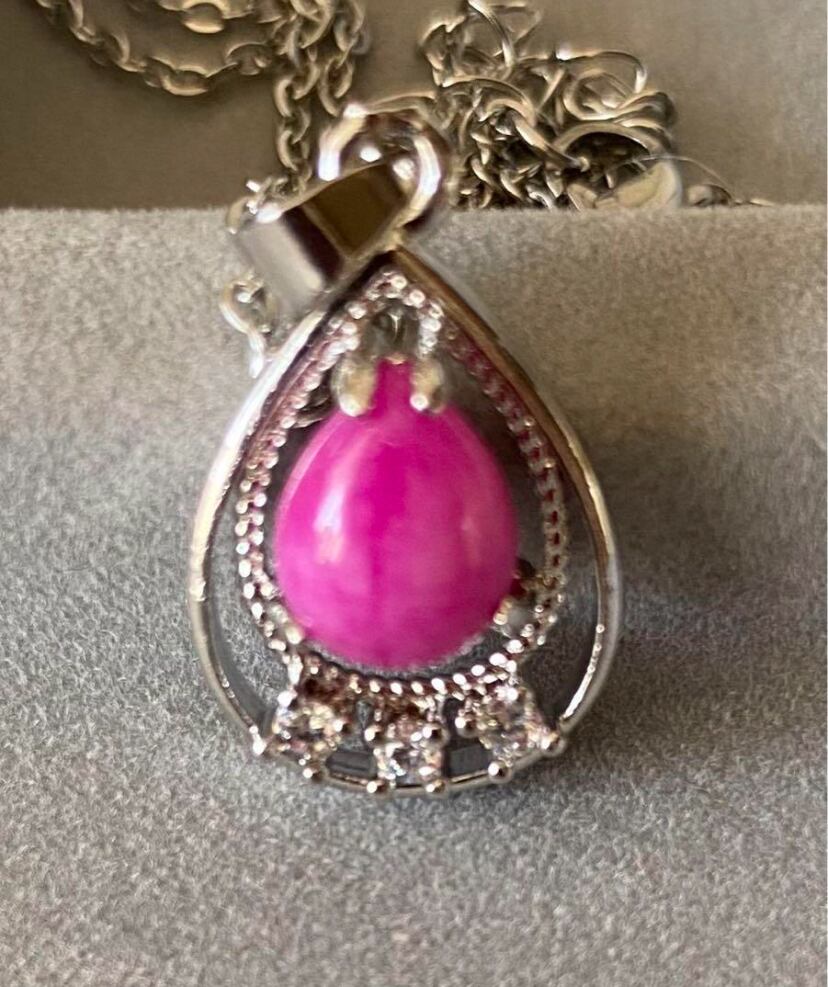 天然石スギライト世界3大ヒーリングストーンネックレス。ピンクスギライトは滅多に手に入らない希少な石として知られ、世界3大ヒーリングストーンのひとつ。その美しい紫色が、ハートチャクラを開いて愛情を高め、苦しみを癒すと言われています。アレルギー対応のサージカルチェーンで長さ調整可能。このネックレスを身につけることで、心身を癒す力を感じてみてください