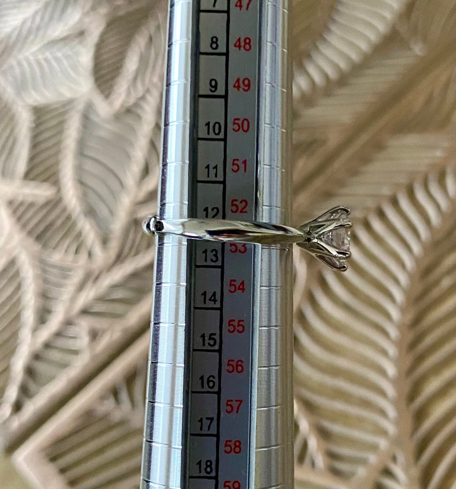 モアサナイト6爪の1カラット指輪。輝きが美しいシンプルなデザインで、どんなコーディネートにもぴったりなアクセサリーです。華やかなシーンから普段使いまで、幅広いシーンで活躍してくれるリングです。
